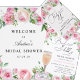 Rosas cor-de-rosa esfregam convites de chá de panela.