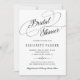 Chá de panela clássico elegante de caligrafia branca e preta, apresentando um roteiro manuscrito com espirais. +++++++++++++ Adequado para partidos de chic formais tradicionais. ++++++++++++++ OBSERVAM que a cor de fundo na frente e atrás é editável. Você pode alterá-las com a paleta de cores do casamento depois de selecionar a opção PERSONALIZAR.