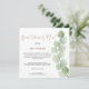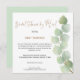 Estilo minimalista com um elegante galho de folha de eucalipto subindo pelo lado direito e tipografia à esquerda. Chá de panela por Correio é definido em um script moderno de na moda e o resto do texto que você pode personalizar facilmente. Você também pode alterar a cor do plano de fundo verde de coordenação no verso, se necessário. O cartão quadrado adiciona um toque contemporâneo.