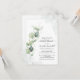 Chá de panela de aquarela Eucalyptus Script Floral Invitation com um moderno design botânico minimalista em fundo branco com tipografia popular, você pode facilmente editar DICA: Veja abaixo outros itens de eventos de preparação de casamento e pré-casamento, incluindo convites de chá de panela, cartas de agradecimento, etiquetas de champanhe, etc. para este design!