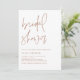 Convide convidados para o seu evento com este chá de panela minimalista. Ele apresenta uma escrita manuscrita terracota minimalista com simples tipografia. Personalize adicionando nomes, data, hora, local e outros detalhes. Este simples convite para apresentação de script está disponível em outros estoques de cartão.