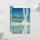 Chá de panela de água do mar cristalina. O cartão de chá de casamento personalizado para a noiva de praia tem texto de modelo e é decorado com um dólar de areia e estrelas-do-mar na frente. Uma borda de estrelas-do-mar sobre a água do oceano decora as costas com texto verde-escuro para o nome das noivas.