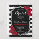 Chá de panela de Stripes Brancas Vermelhas Prateadas. Design elegante com prata brilhante falso. Apresenta a fonte do script, faixas brancas pretas e rosas vermelhas. Perfeito para um Chá de panela na moda. Envie-me uma mensagem se precisar de mais personalização.