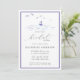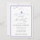 Um elegante, moderno chá de panela clássico com tema náutico, com impressão de tinta de ondas oceânicas, um pequeno barco e gaivotas voando sobre ele, tipografia clássica com um toque moderno, caligrafia moderna, além de um elegante quadro duplo e listras nas costas. Uma escolha encantadora para um chá de panela de praia, um chá de panela costeiro, um chá de panela de lago, um chá de panela de borda d'água, um barco ou chá de panela de iate.