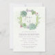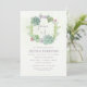 Arte com suculência de aquarela Convite de festas de casamento com tons de roxo, rosa e verde personalizáveis para seus detalhes de evento.