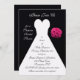 Procurando um chá de panela surpresa? Este chá de panela surpresa excelente mostra um vestido branco de casamento em um fundo preto com um buquê de rosa ao lado. O convite diz "Por favor, junte-se a nós" no topo com as palavras "por um Chá de panela Surpresa" à esquerda do vestido de noiva. Você pode personalizar o design com todos os seus detalhes de chá surpresa dentro do vestido de noiva. No fundo do vestido de noiva está outro lembrete da natureza surpresa do chá com as palavras "Por favor, lembre-se que é uma surpresa!" Direitos autorais