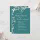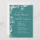 Nosso belo chá de panela verde é o início perfeito para seu chá de panela primavera, chá de panela de verão, chá de panela de outono ou chá de panela de inverno que sua noiva e hóspede irão amar. Nossos convites de chá de panela elegantes apresentam um floreio floral branco vintage em um fundo azul teal e apresentam um retorno correspondente! Visite nosso compro para ver opções de cores adicionais neste convite para chás de casamento.