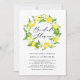 Convide familiares e amigos com este chá de panela personalizável. Apresenta uma camada aquosa de limões e flores de limão com um padrão de limão correspondente. Estes convites de limão são perfeitos para o tema dos citros e chás de panela de verão. Personalize adicionando um nome, data, hora, local e outros detalhes do evento.