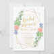 Belos convites de chá de panela elegantes com cactos de aquarela floral botânica suculentos cercados por um quadro de terrário geométrico dourado. Este design de chic moderno personalizado pode ser facilmente personalizado com os detalhes do seu chá.