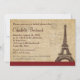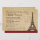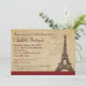 Comece um chá de panela romântico parisiense com um convite único para parecer um postal de uma era passada. Os antecedentes lembram uma carta envelhecida com sutis gravura, escrita cursiva, visto e selos postais. A Torre Eiffel é dominante no topo de um painel de marrom. O plano de fundo do papel é repetido no verso para realçar informações adicionais para seus convidados. Disponível com produtos correspondentes.