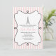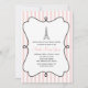 Os convites elegantes e quicos apresentam uma bela ilustração em Torre Eiffel sobre um fundo de listras rosa e brancas. Perfeito para qualquer chá de panela, festa de solteira, festa de aniversário, doce dezesseis, quinceanera, e mais!