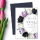 Elegante design floral com script de estilo manuscrito moderno e tulipas brancas e pretas de primavera. O texto pode ser facilmente personalizado para um único design único para o seu dia especial.