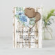 cartão de chá de panela de vaquinha com design floral azul e sotaques castanhos.