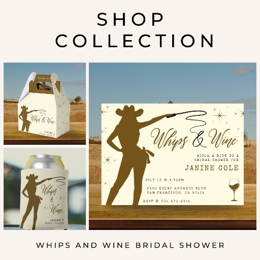 Tan Brown Whips e chá de panela de vinho. Personalize-o com os detalhes do evento e/ou altere as cores.