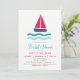Chá de panela de veleiro náutico. Convidar apresenta ondas e veleiros cor-de-rosa e turquesa