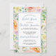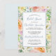 Flores cor-de-rosa suave e doce, amarelas, laranja, brancas e azuis criam uma bonito estrutura rosa para rodar os detalhes do seu chá de panela. A caligrafia moderna acrescenta uma vibração contemporânea. Todo texto pode ser editado.