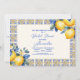 Chá de panela temático limão com ilustrações aquáticas dos limões, flores de limão e padrão de azulejo mediterrânico. Personalize adicionando nomes, data, hora e outros detalhes. Este chá de panela de limão é perfeito para casamentos de verão e chás de panela temáticos mediterrânicos.