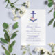 Âncora náutica azul concebida com os florais ranunculus, cor-de-rosa e branco, com eucalipto verde para um evento de Verão