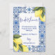convites de chá de panela de limoncello em tons amarelos e azuis.