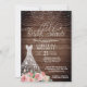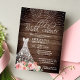 Convites de chá de panela florais, rosas, mas elegantes, cor d'água. Vestido branco de diamante fino e terra no fundo do painel de madeira. Perfeito para qualquer tema chá de panela, primavera, verão, ao ar livre....modelos fáceis de editar - adicione seu texto. A fonte, o tamanho e a cor podem ser alterados.