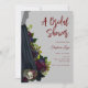 Apresentando um lindo vestido de noiva colorido de cinza escura e buquê de crânio de aquarela, este chá de panela convida seus convidados e define os tons para um evento adorável. Perfeito para qualquer brunch de noivas escuras, ou chá, este convite é certamente para agradar.