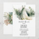 Espero que goste deste vestido branco de casamento com folhas verdes de eucalipto na parte de trás do cartão são flores leves de peônias cor-de-rosa. Os produtos e convites correspondentes estão disponíveis neste conjunto de coleções.