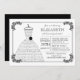 chá de panela moderno único com um vestido bonito de noiva negra num cabide armado com um belo quadro de folhas floreadas e elegante sobre um fundo branco. O vestido de noiva tem as palavras "aqui vem a noiva" escritas nela e uma flor na cintura. Sacudir o convite para encontrar uma cor preta correspondente de volta para um toque especial extra. Na moda e contemporâneo, com um toque de chá de casamento de noiva bonito vintage está disponível em nosso compro em outras combinações de cores populares.