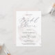 Chá de panela de vestidos modernos elegante e simples chá de panela de vestido de noiva de cor d'água apresentando uma imagem de vestido de noiva de cor d'água esmaecida e calçados de casamento na parte de trás do convite. Este chá de panela boêmico é uma forma doce de convidar convidados para um próximo chá de panela.