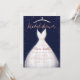 Os convites de chá de panela elegantes apresentam um vestido branco de casamento com um roteiro de chá de panela brilhante de brilho faux em fundo azul de marinho editável a cores.
