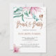 Um primavera glamouroso moderno, ou um chá de panela de verão, com borbulhante e uma cor d'água, com flores de magnólia rosa pinceladas, folhagem verde e folhas de eucalipto e um roteiro de caligrafia clássico escrito à mão. ++++++++++ É fácil personalizá-lo com seus detalhes! ++++++++ Adequado para os chás de panela temáticos de glame floral moderno, jardim ao ar livre ou festas elegantes de noivas de quintal de Verão.