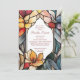 Defina o tom para o seu chá de panela com este convite ousado e moderno com florais de vidro corados vibrantes. Projetado para noivas que amam toques artísticos e únicos, este convite é perfeito para celebrações coloridas e contemporâneas. Totalmente personalizável, ele oferece uma maneira incrível de mostrar seus detalhes de eventos e impressionar seus convidados.