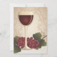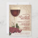 Uma bela taça de vinho de vinho tinto, desenhada à mão, é nidificada entre polos de uva tinto deliciosa, um design perfeito para uma celebração de chá de panela com tema de vinho. Quando a noiva ama vinho, se a festa ou o casamento é em um vinhedo, ou em um país de vinho, este design elegante vai dar o palco para seu maravilhoso evento. O copo de vinho é delicadamente sombreado e possui uma adorável variedade vermelha, como uvas maduras, derramares sobre um fundo envelhecido, de padrão castanho. Oferecida aqui no estoque básico de papel, este design também seria especialmente maravilhoso em linho ou feltro.