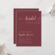 Apresentando nosso Chá de panela Rosa de Boho Moderno em um cenário rico e atraente do Vinho Vermelho — um convite que combina sem esforço elegância minimalista com encanto boêmico. Este convite é um verdadeiro testemunho do casamento do minimalismo moderno e da essência livre e espirituosa do estilo boho. Cada detalhe é apresentado em uma matiz cativa de ouro-rosa, infundindo o convite com um toque de glamour e romance. A maioria do texto é mostrada em uma fonte limpa e contemporânea, criando um aspecto elegante e sofisticado. O nome da noiva, no entanto, é delicadamente escrito em uma escrita graciosa, acrescentando um elemento de charme e sofisticação ao convite. A palavra "noiva" é brincalhosamente adornada com florescimentos caprichosos, culminando num coração boêmico no final, capturando a essência da estética do boho de uma forma deliciosa. Contra o fundo profundo e luxuoso do Vinho Vermelho, o texto do ouro rosa sobressai vibrantemente, criando um contraste impressionante que expele calor e opulência. A matiz do Vinho Vermelho acrescenta um ar de mistério e sofisticação, fazer que seja a escolha ideal para uma celebração de chá de panela que exumente um sentido de elegância e estilo. O nosso Chá de panela Rosa de Boho Moderno no Vinho Vermelho não é apenas um convite; é uma obra de arte que conta uma história do seu sabor único e da beleza do seu evento. Captura a essência do minimalismo contemporâneo e a caprichosa da alura boêmica, estabelecendo a palco de uma celebração cheia de amor, riso e memórias queridas. Envolva o atrativo da simplicidade moderna e do espírito boêmico com o nosso Chá de panela Rosa moderno de Boho Dourado no Vinho Vermelho. É mais do que um convite; é uma prévia da experiência encantadora que aguarda seus convidados — uma celebração que promete ser tão rica e vibrante quanto o próprio cenário do Vinho Vermelho.