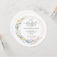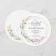 convites de chá de panela redondos de na moda com uma elegante coroa de flores silvestres de cor d'água, e seus detalhes em caracteres quicos. Solicite IMPRESSO, DOWNLOAD INSTANTÂNEO ou ambos! **TIP: Esse tamanho requer postagem extra - e-mail em um envelope A7 (5,25" x 7,25") para não ter custo de postagem extra. CORRESPONDENTE a itens na nossa coleção.