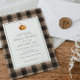 Chá de panela com um fundo clássico de xadrez de búfalo castanho e uma abóbora laranja. Estes convites de moda são perfeitos para um chá rústico. Personalize com suas informações para que a noiva seja. Clique em "clicar para personalizar mais" para alterar o estilo, o tamanho ou a cor da fonte.