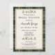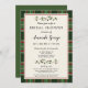 Uma caixa de tipografia de nata pálida é acentuada por imagens de vinho verde de baga vermelha e bordada por um padrão sazonal vermelho e verde de xadrez. Um chá de panela moderno e moderno de Natal para a sua futura hospedagem.
