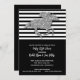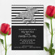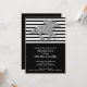 Convites de chá de panela de casamento dermatados com um falso cavalo de corrida prateado em listras brancas e pretas na parte superior e preta na parte inferior para sua informação de festa. CORRESPONDENDO a itens na nossa loja.