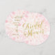 convites de chá de panela bonitos com uma bela ilustração vetorial de um diamante rosa e um texto de folha de ouro falso.