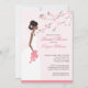 Parta seu evento fora do direito com nosso chá de panela na moda & elegante da flor de cerejeira que caracteriza uma noiva bonita do afro-americano ajustada em um fundo rosa pálido com um rosa mais escuro para trás. Apenas personalize nosso convite com sua informação do chá de casamento e você é todo ajusta-se para ir. Disponível em outras combinações de cor em nossa loja em www.celebrateitweddings.com. Verificação para fora nosso obrigado de harmonização você notas, etiquetas e botões nupciais em nossa loja
