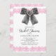 Chá de panela moderno e elegante com arco de coquete preto a cores-d'água com borda de fita rosa com rendas cardíacas e texto de caligrafia vibrante.
