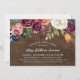 Barato personalizado convites de chá de panela de outono impressos personalizados com detalhes de sua parte. Este design de tendência apresenta uma borda floral de cor d'água boho em cores rústicas quentes em cores de queda em um fundo de madeira falsa. O lado inverso tem um fundo de cor d'água abstrato púrpura ou use o espaço para texto adicional, se necessário. Use as ferramentas de design para personalizar o texto, editar as fontes e as cores ou adicionar suas próprias fotos para criar seus próprios convites de chá de casamento exclusivos.