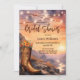 Chá de panela de aquarela com bota de cowboy com flores que não passavam por um pôr do sol em um vale. Luzes de cordas festivas adicionam atmosfera. Na parte traseira, é fácil personalizar o modelo de código QR. Se não for necessário, pode simplesmente eliminá-lo. Um belo convite para uma celebração do estilo country e ocidental.