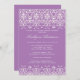 Comece seu evento bem com nosso Chá de panela apresentando uma linda damask branca em um rico fundo Lilac lavanda. Combinação de cores preto e branco de tendência. Personalize nosso convite com suas informações de chá de casamento e você está pronto para ir. Disponível em outras combinações de cores em www.celebrateitinvites.com