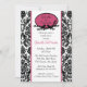 Comece seu evento bem com nosso Chá de panela apresentando uma linda estrutura oval com pássaros em galhos com Damasco branco e preto com um corte rosa. Combinação de cores preto e branco de tendência. Apenas personalize nosso convite com suas informações de casamento e você está pronto para ir