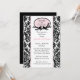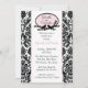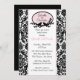 Comece seu evento bem com nosso Chá de panela apresentando uma linda estrutura oval com pássaros em galhos com Damasco branco e preto com um corte rosa. Combinação de cores preto e branco de tendência. Apenas personalize nosso convite com suas informações de casamento e você está pronto para ir