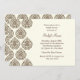 Uma cor damasco elegante e vintage enfeita este convite. É apresentado no documento de base; no entanto, sugiro o peso e a textura do papel de linho.
