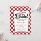 Um chá de panela retrorreflector vermelho e branco agudo com fundo vermelho e branco marcado para "Chá The Bride".