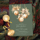 Este elegante chá de panela natalício apresenta Enfeites de natal de ouro de cor d'água lindíssimos com delicados galhos de pinheiro e fitas de ouro. O convite é perfeito para celebrar a noiva que se aproxima durante o feriado. A frente do convite apresenta os Enfeites de natal dourados com aquarela e o nome, data e hora da noiva do chá. O design geral é festivo e sofisticado, e o convite é para impressionar seus convidados.