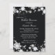 Lindas flores brancas tecidos + flocos de neve brilhantes + espirais elegantes + fundo preto desenhado em Convites de chá de panela personalizados. O chá de casamento moderno e glamouroso convida perfeito para o seu próximo CHÁ DE PANELA WINTER | CHÁ DE CASAMENTO WINTER WONDERLAND ou CHÁ DE PANELA PRETO e BRANCO! Todo o texto de amostra pode ser facilmente personalizado com sua própria redação. ((Você pode encontrar os essenciais de casamento e favores nesta loja, Bridal Heaven. Entre em contato com ujean4791@gmail.com para obter trabalho personalizado e/ou coordenar papelaria de casamento.)