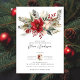 Este elegante chá de panela de Natal apresenta lindas flores de Natal com bagas ocas, flores brancas e ramos de pinheiro. O convite é perfeito para celebrar a noiva que se aproxima durante o feriado. O design geral é festivo e sofisticado, e o convite é para impressionar seus convidados.